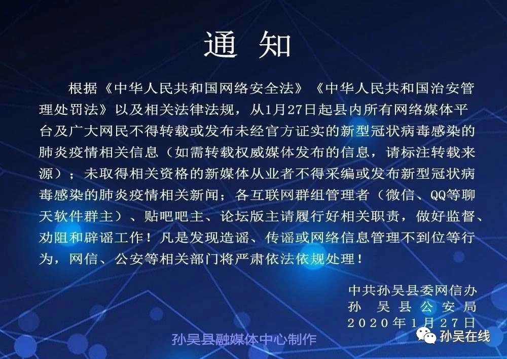 希望广大市民不信谣、不传谣,密切关注县应对新型冠状病毒感染肺炎疫情工作领导小组指挥部发布的权威信息。