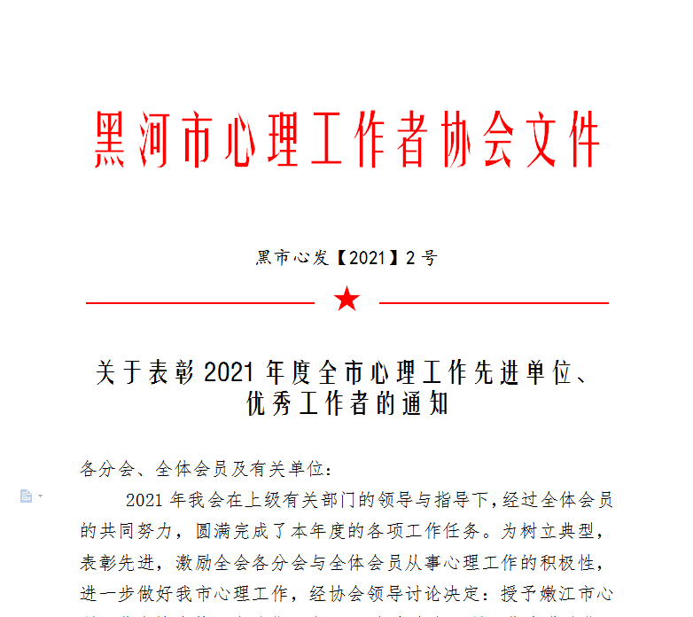 1.嫩江市心理工作者协会